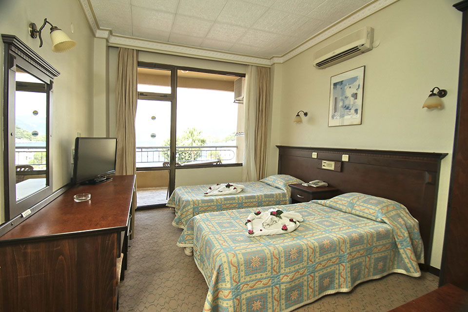 Smeštaj: Standardne sobe – dvokrevetne ili dvokrevetne sa pomoćnim ležajem, opremljene TWC-om, TV-om, klima uređajem, mini barom (dodatno se plaća, besplatna je samo voda na dan dolaska), fenom, balkonom. Family sobe su predvidjene za smeštaj minimum 2, a maksimum 4 osobe (2 odrasle osobe i 2 dece), strukture francuski ležaj i dva pomoćna ležaja, opremljene kao i standardne sobe.