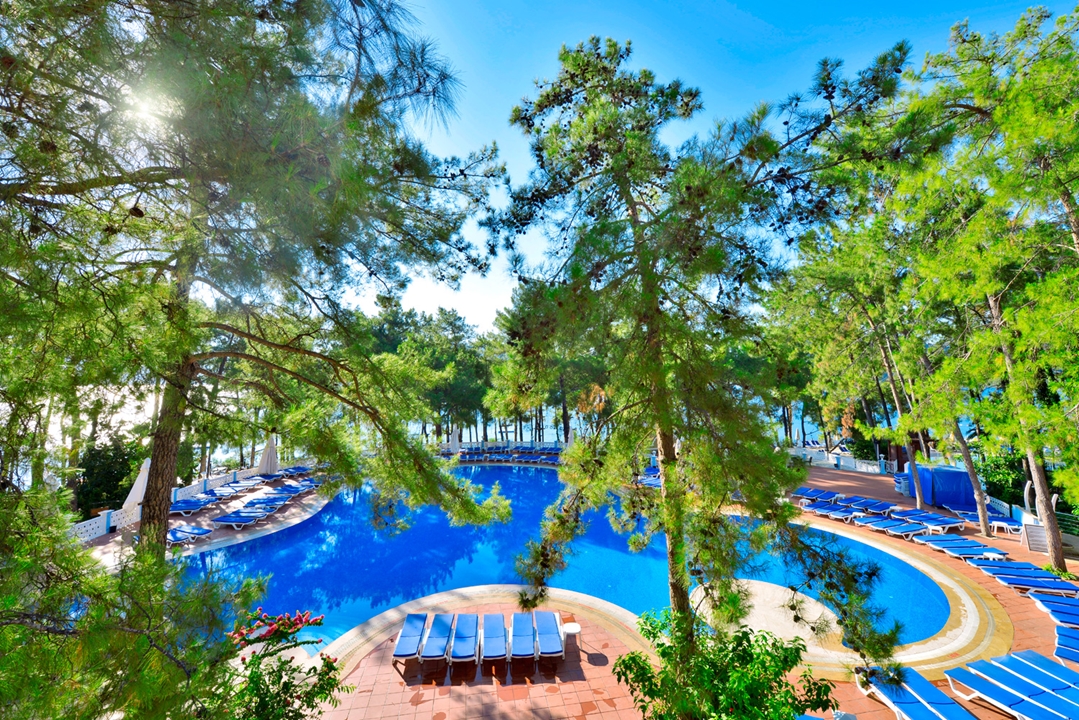 Lokacija: Hotelski kompleks okružen zelenilom, nalazi se oko 5 km od Marmarisa na putu ka Ičmeleru, od koga je udaljen 2 km i sa oba mesta je povezan lepim uređenim šetalištem.