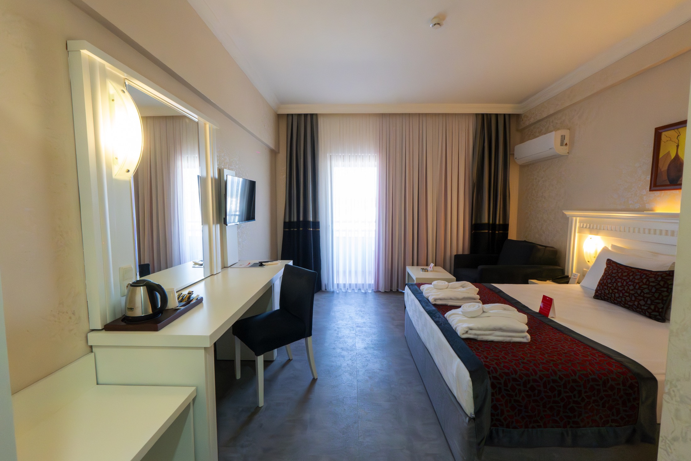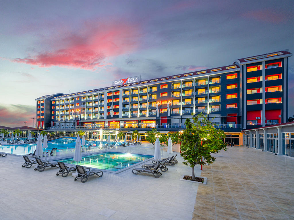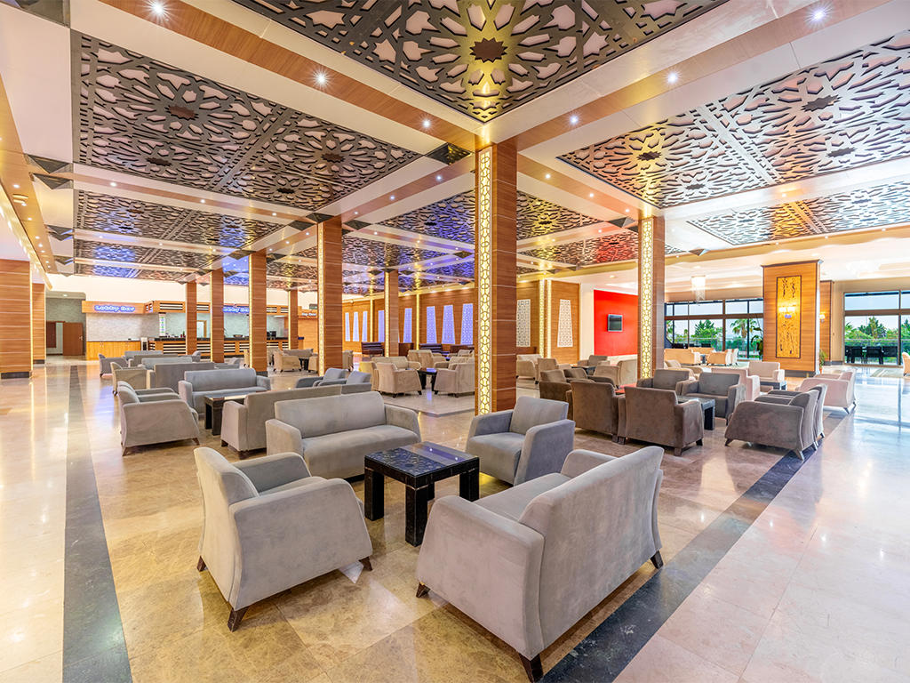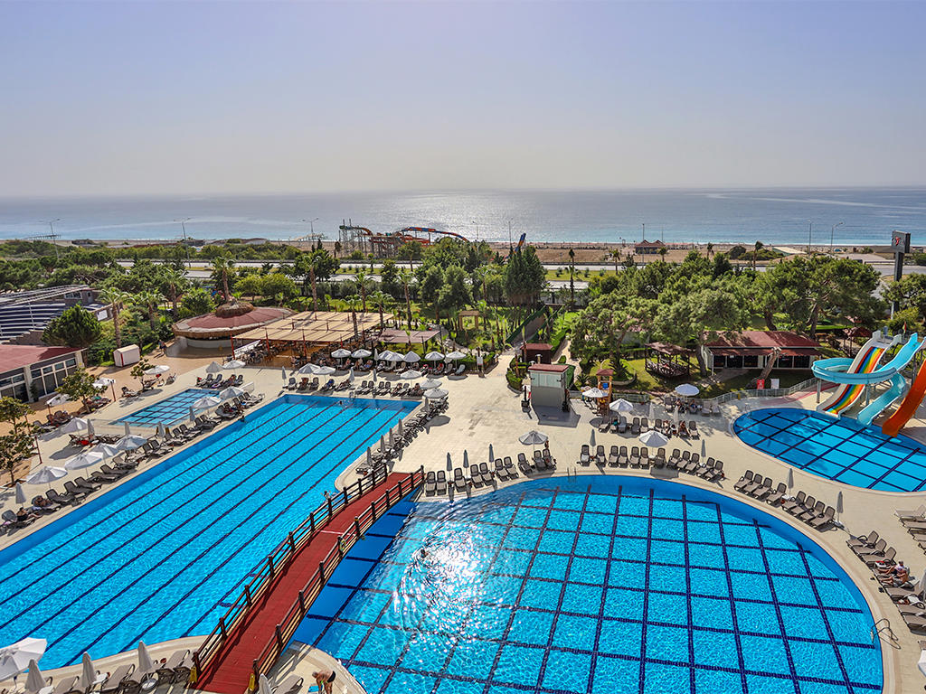 Sadržaj: Glavni restoran sa uslugom , barovi u okviru hotelskog kompleksa, A’la Carte restorani Ottoman -turska kuhinja , Poseidin- riblji restoran , Mia Casa- mediteranska kuhinja, barovi u okviru hotelskog kompleksa uključujući i bar na plaži. Posebno se plaća: usluga lekara, telefon, fax,čuvanje dece,frizer, šoping centar. Besplatan WiFi internet u celom hotelu.Otvoreni i zatvoreni bazeni za decu i odrasle, akva park na plaži, fitnes centar, sauna, tursko kupatilo, odbojka na pesku, košarka, teniski tereni, stoni tenis. Zabavni programi tokom dana, večernji šou programi. Mini klub za decu od 4-12 god sa igralištem , mini disko uveče.
