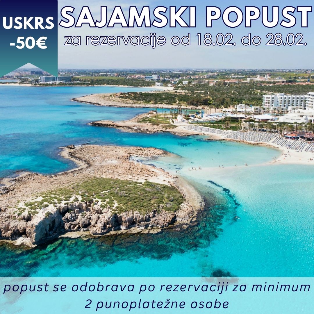 - Avio karte na relaciji Beograd – Larnaka – Beograd redovnom linijom avio kompanije Air Serbia sa predatim prtljagom do 23kg.