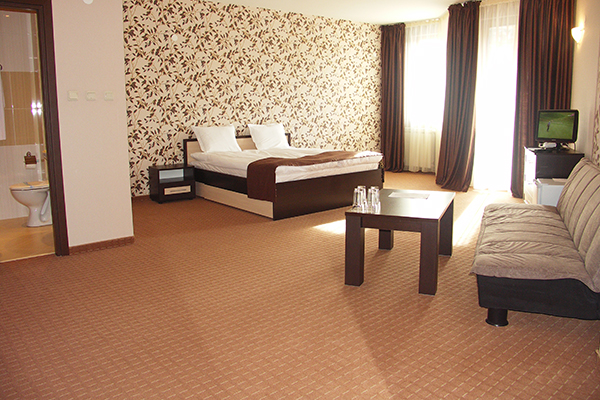 1/2 standardna soba - dvokrevetna soba strukture dva osnovna ležaja ili francuski ležaj, uz mogućost jednog pomoćnog ležaja (žičani krevet ili fotelja na rasklapanje). Pomoćni ležaj namenjen je za smeštaj jednog deteta do 12.99 god Maksimalni broj osoba u sobi je do 2 odrale osobei (2 odrasle osobe + 1 dete do 12.99 god ).