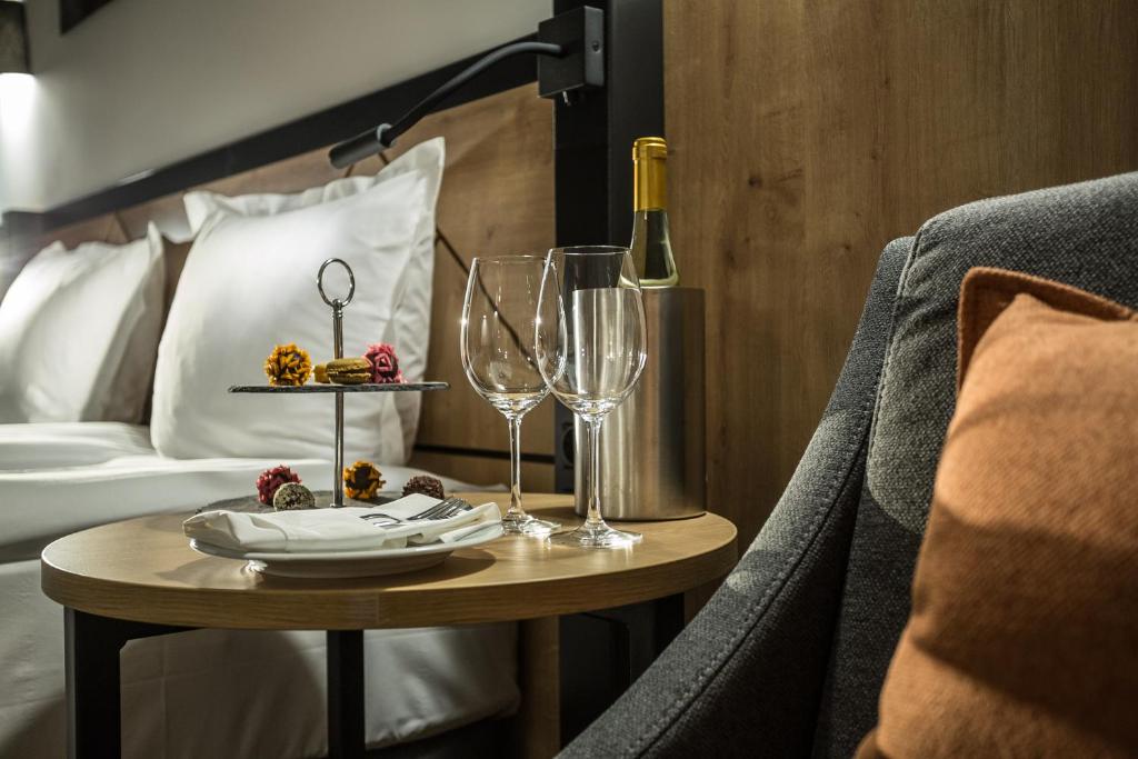 Suite Deluxe (pogled grad) - smeštajna jedinica koja se sastoji od jedne spavaće sobe, strukture dva osnovna ležaja ili francuski ležaj i dnevnog boravka sa sofom. Sofa je namenjena za smeštaj jedne odrasle osobe ili dvoje dece uzrasta do 11.99 godina. Maksimalni broj osoba u sobi je do četriri (2 odrasle osobe + 2 dece do 11.99 god. ili 3 odrasle osobe + 1 dete do 11.99 god).
