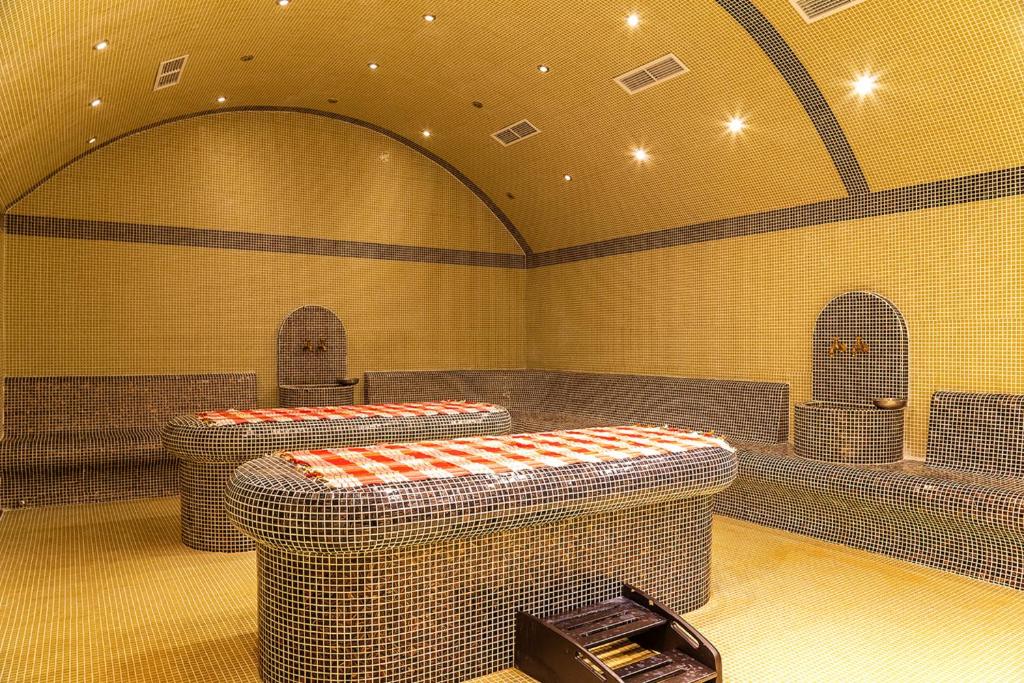 Hotelski sadržaji: Hotel poseduje recepciju, lobi, lobi bar, restoran, noćni bar, diskoteka, tri konferencijske sale, skijašnicu, sef na recepciji, WIFI internet na recepciji, dečije igralište, kazino, salon lepote, sala sa elektronskim igrama, spa centar, zatvoreni bazen, fitnes, masaže (uz doplatu na licu mesta), saunu, parno kupatilo, solarijum, đakuzi, i parking (ograničenog kapaciteta).